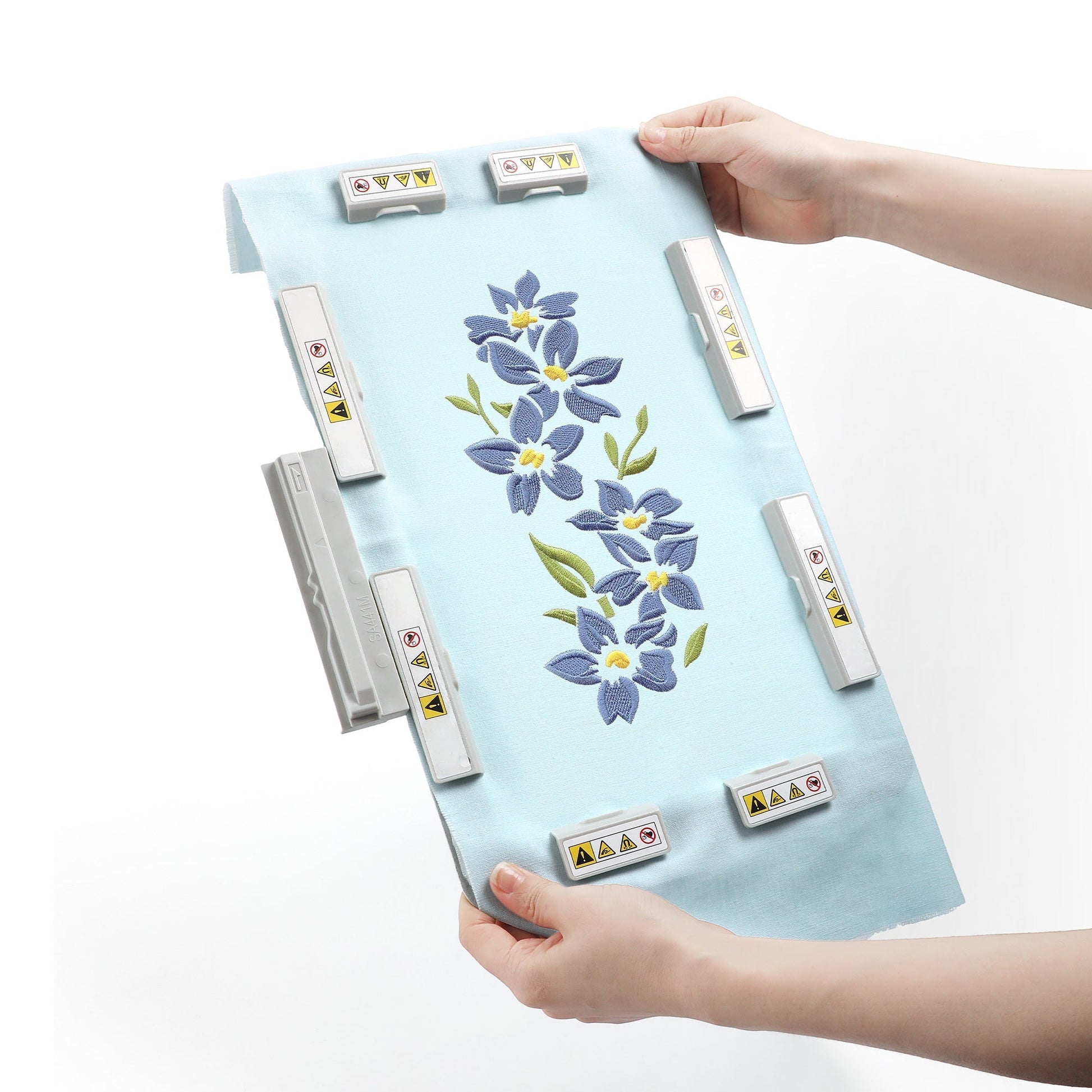 These magnetic embroidery hoops work perfectly with embroidery machines: