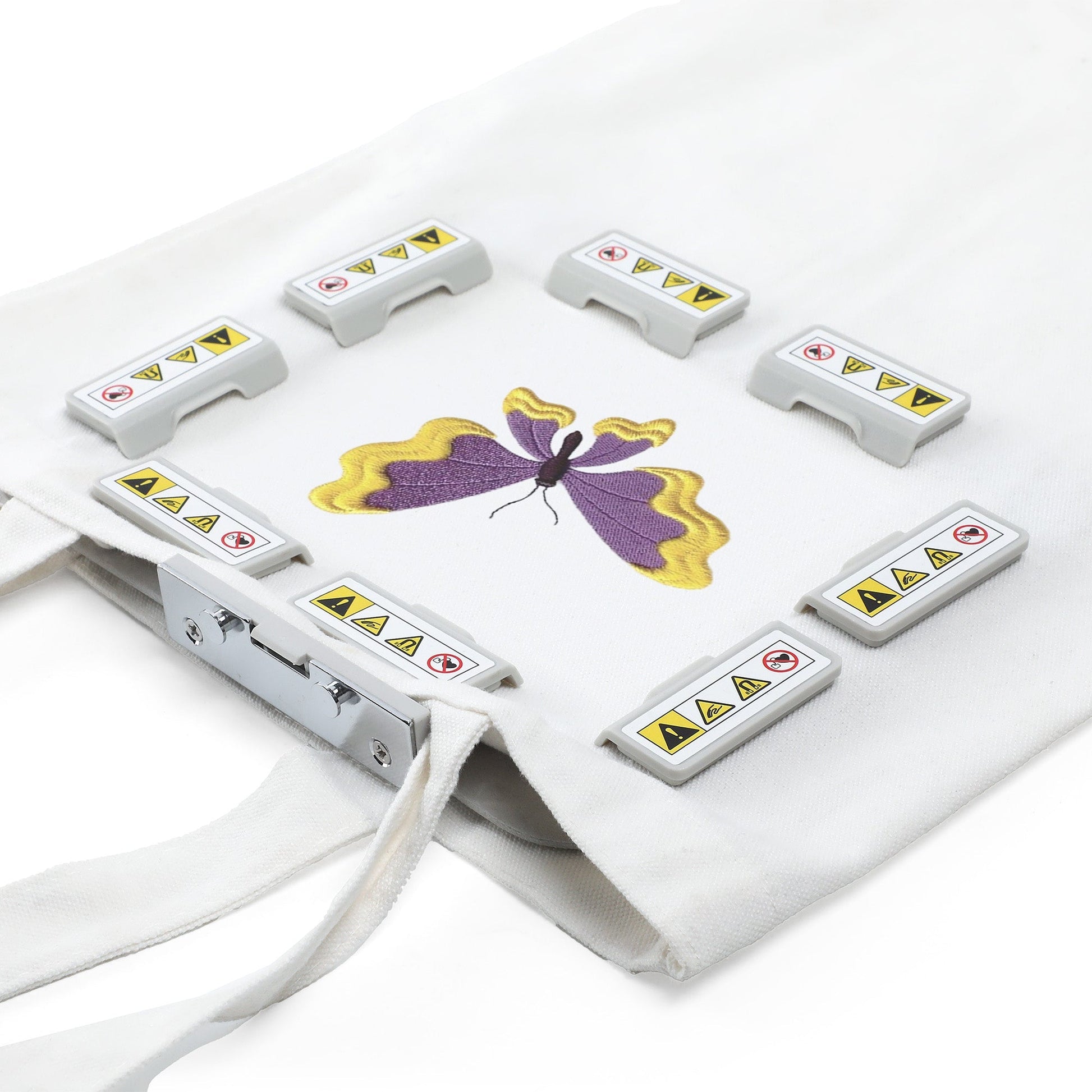 Firmly secures fabric for embroidery while allowing quick adjustments—simply lift and reposition individual magnets without removing the whole hoop. -