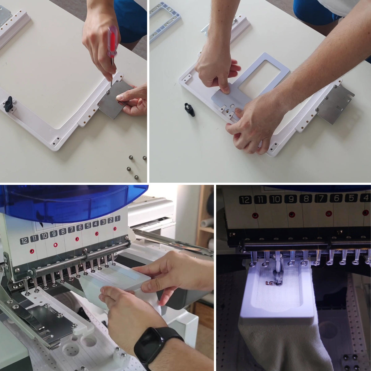 The revolutionary new way to embroider hard-to-hoop, difficult placement areas fast, easy and accurate thanks to the top magnet frame. lt's the hottest new item idea for the multi-needle machines. Image embroidering items that were previously impossible- baby socks, gloves, oven mitts, finished purses, shirt sleeves, jeans and more - all without ever taking them apart! These frames not only save time but also minimize wrist strain, making your machine embroidery experience smoother and more effortless than ever!