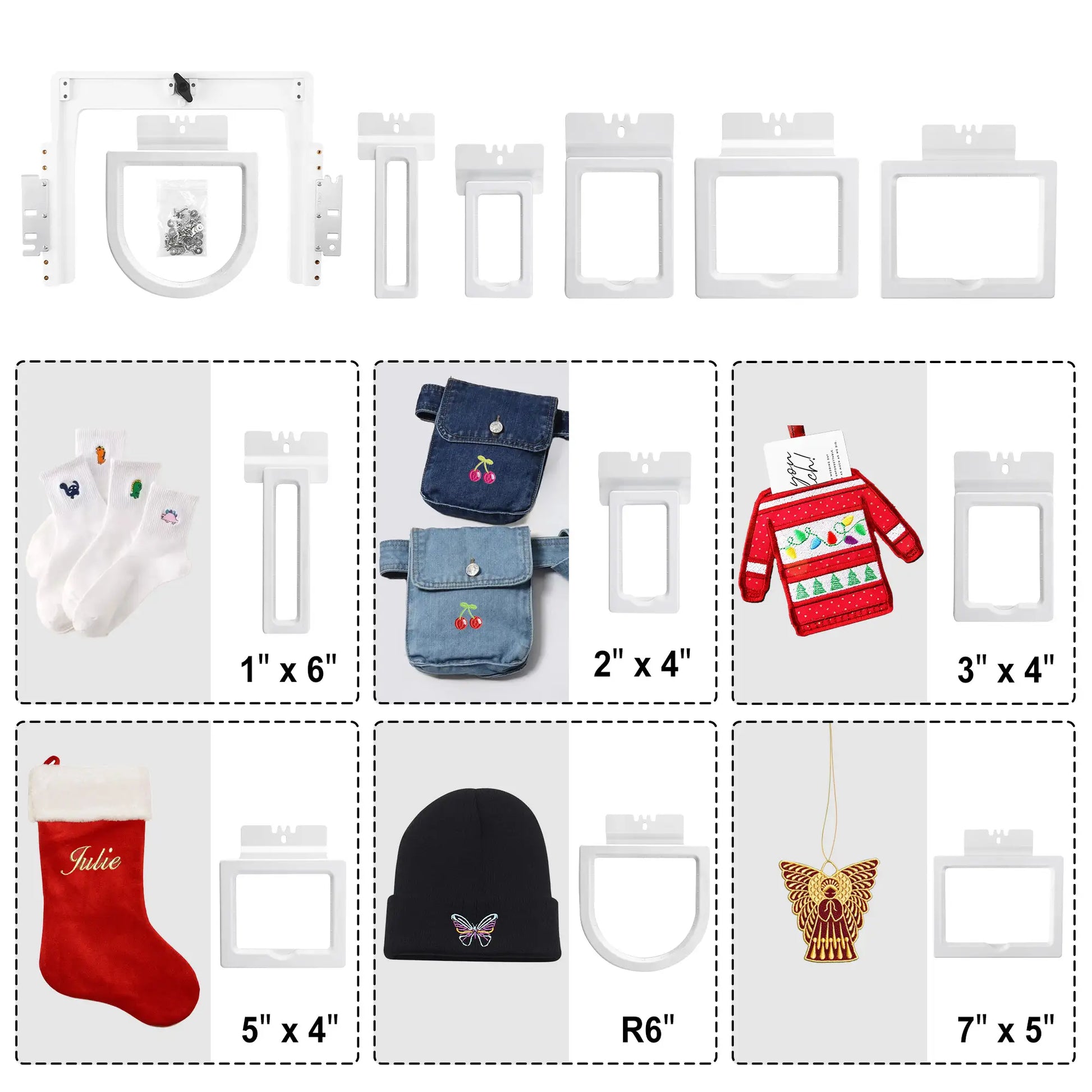 Upgrade your embroidery workflow with the Sew Tech 6-in-1 Magnetic Embroidery Hoop Set, designed for precision, speed, and ease of use. This versatile set includes six different hoop sizes, an adaptor, and brackets, making it an essential tool for embroidery enthusiasts and small businesses alike.