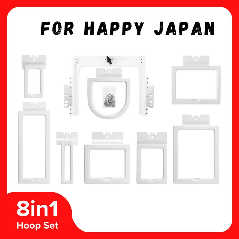 Sew Tech 8in1 magnetic embroidery frame for Happy Japan embroidery machine is a set of magnetic frames that includes 8 sizes. They are expertly designed to automatically secure fabric using magnetic force. These frames not only save time but also minimize wrist strain, making your machine embroidery experience smoother and more effortless than ever!