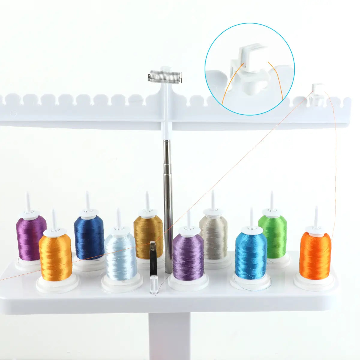This thread stand comes packed with essential tools to enhance your sewing and embroidery experience.