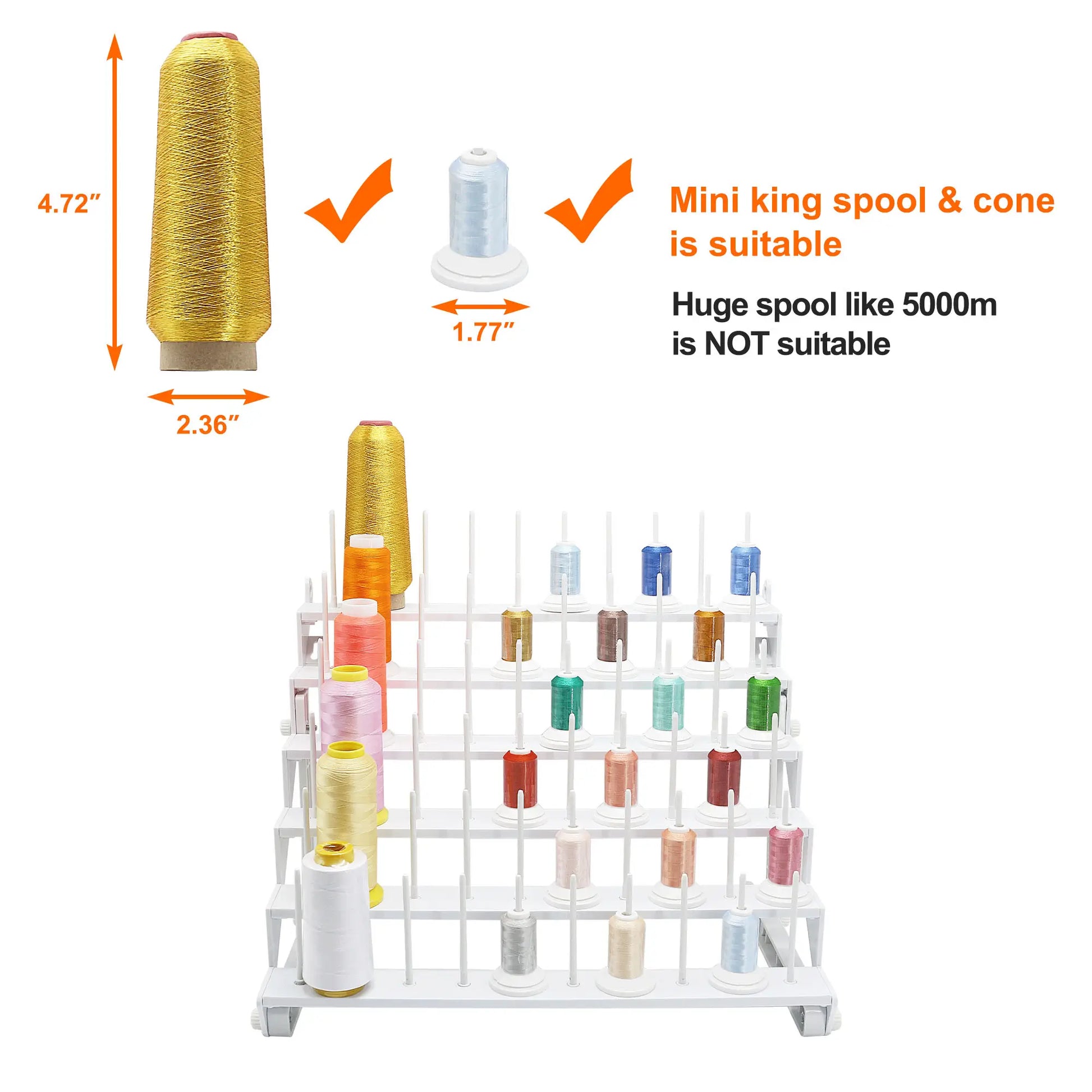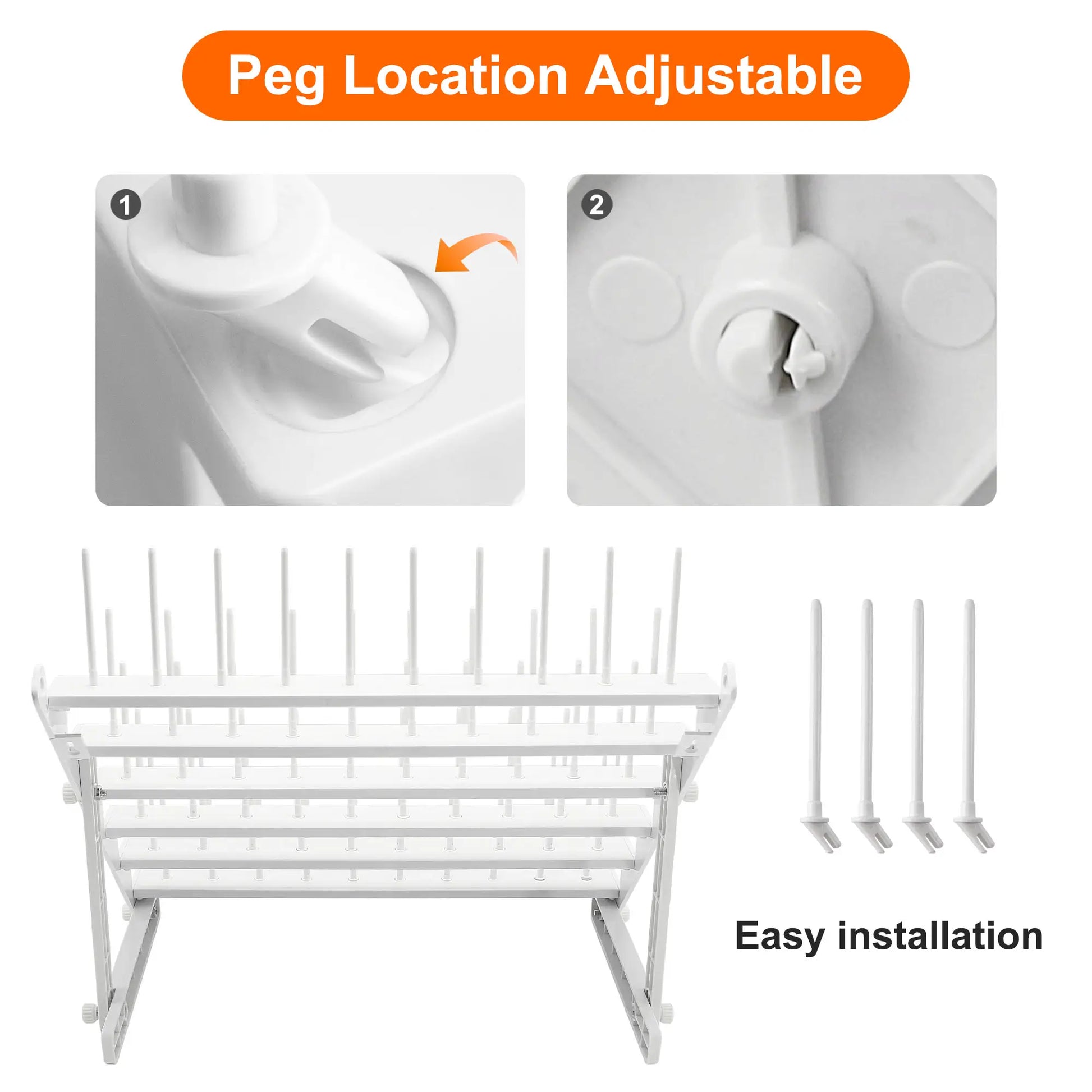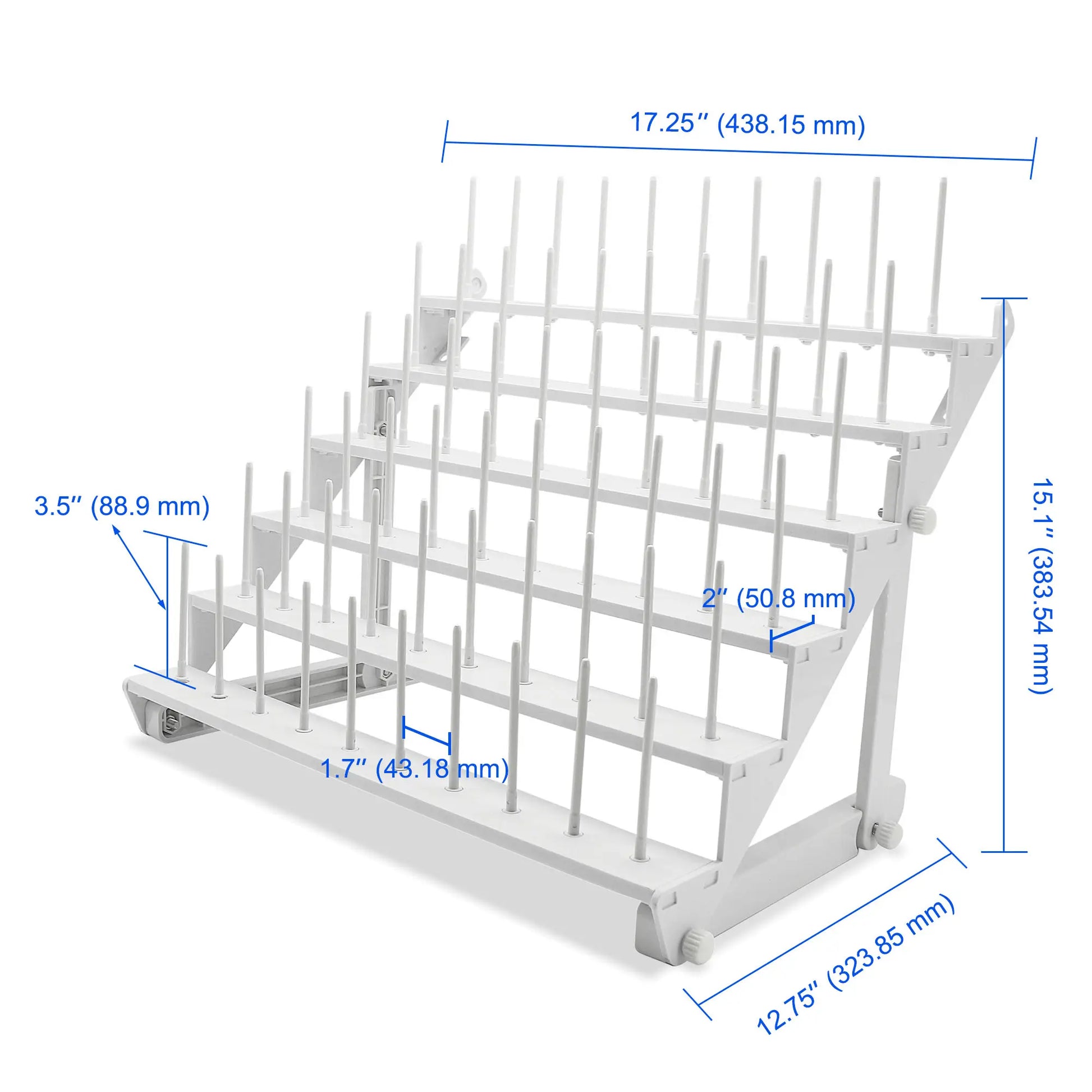 Equipped with 60 extra-long pegs—2 to 3 times longer than standard wooden racks—this holder lets you place up to two spools on one peg or even large cones on alternating pegs. Save precious space and achieve instant tidiness in your sewing area. - Ultimate Flexibility